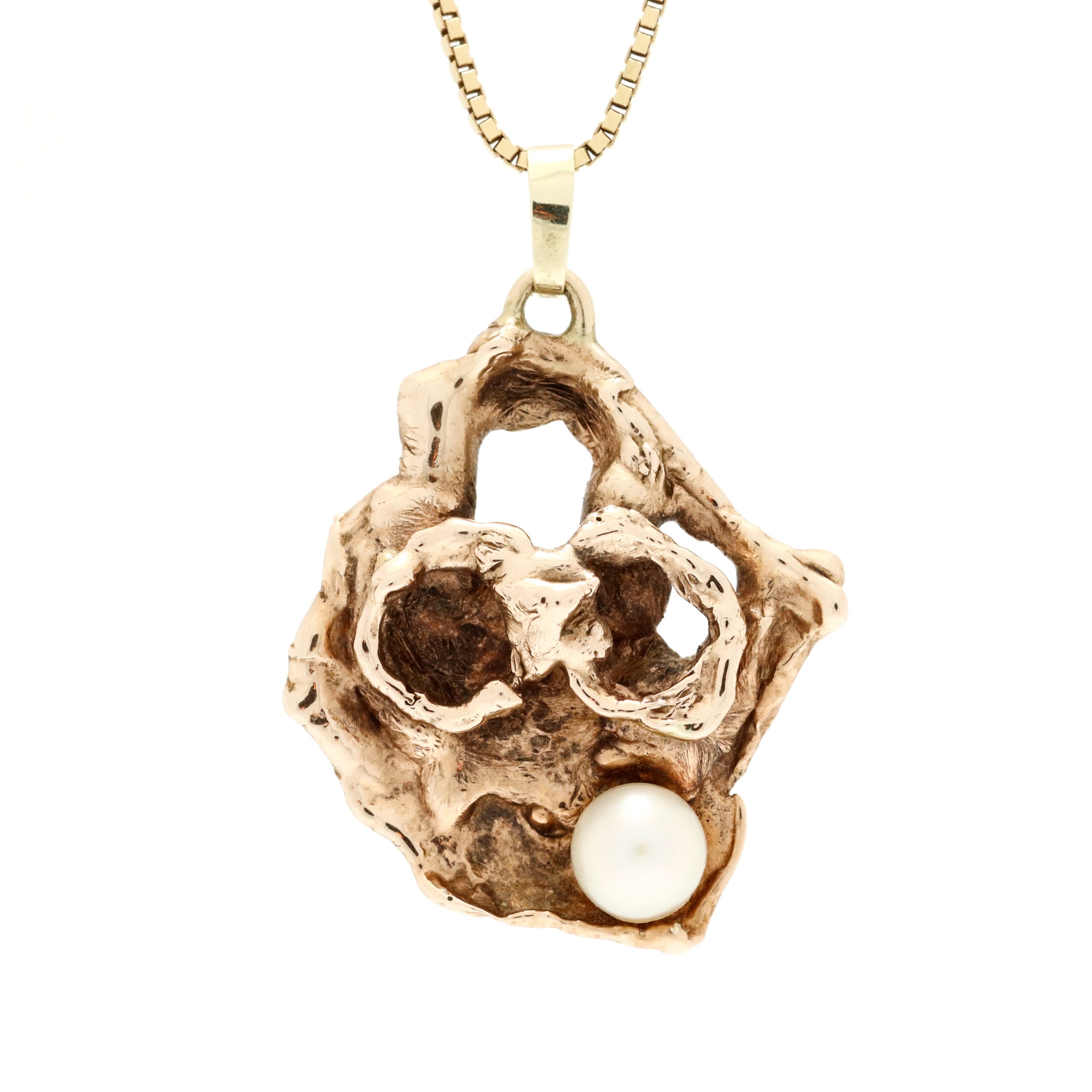 Anheng i gult gull 14 k med perle - Bilde 1