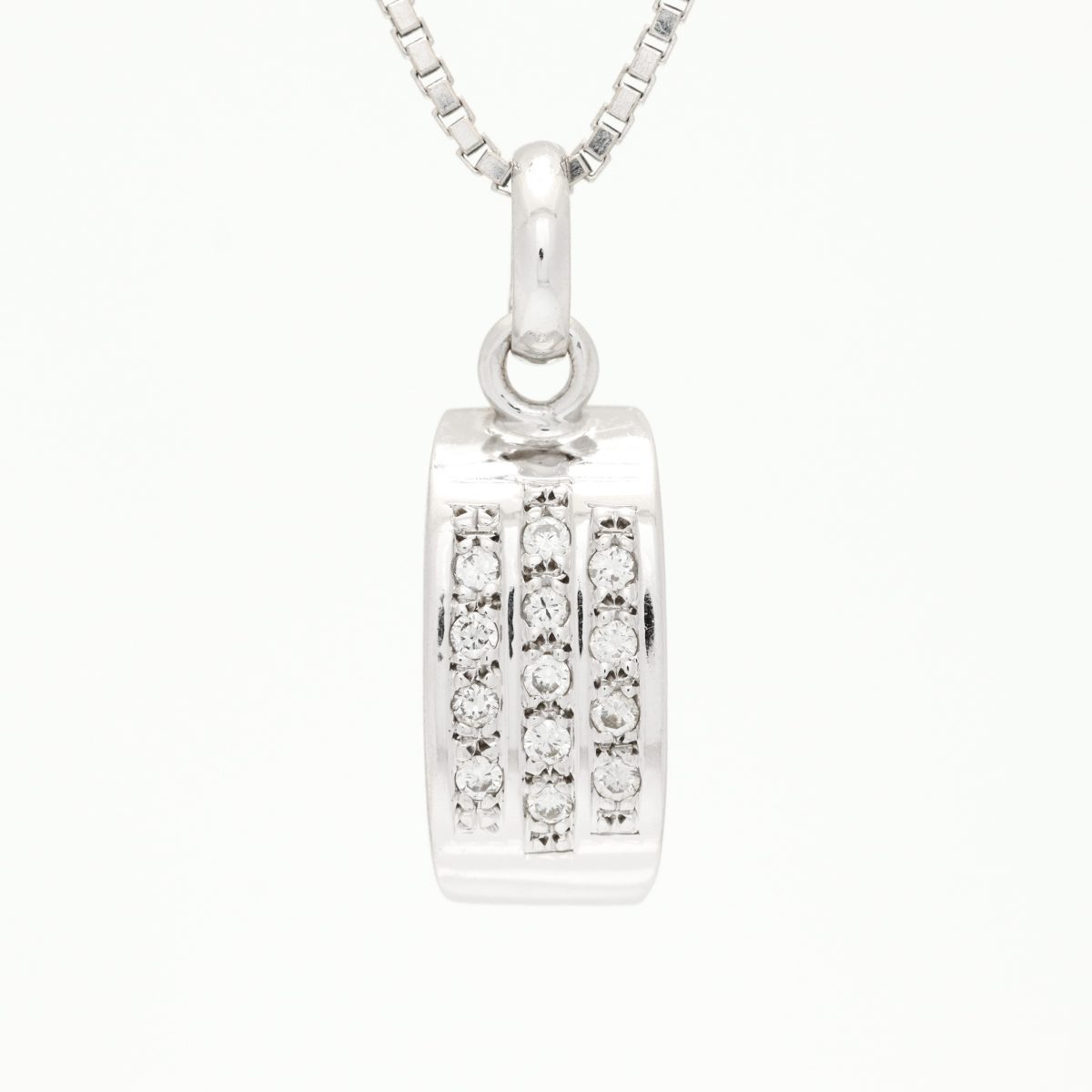 Anheng i hvitt gull 14 k med diamanter