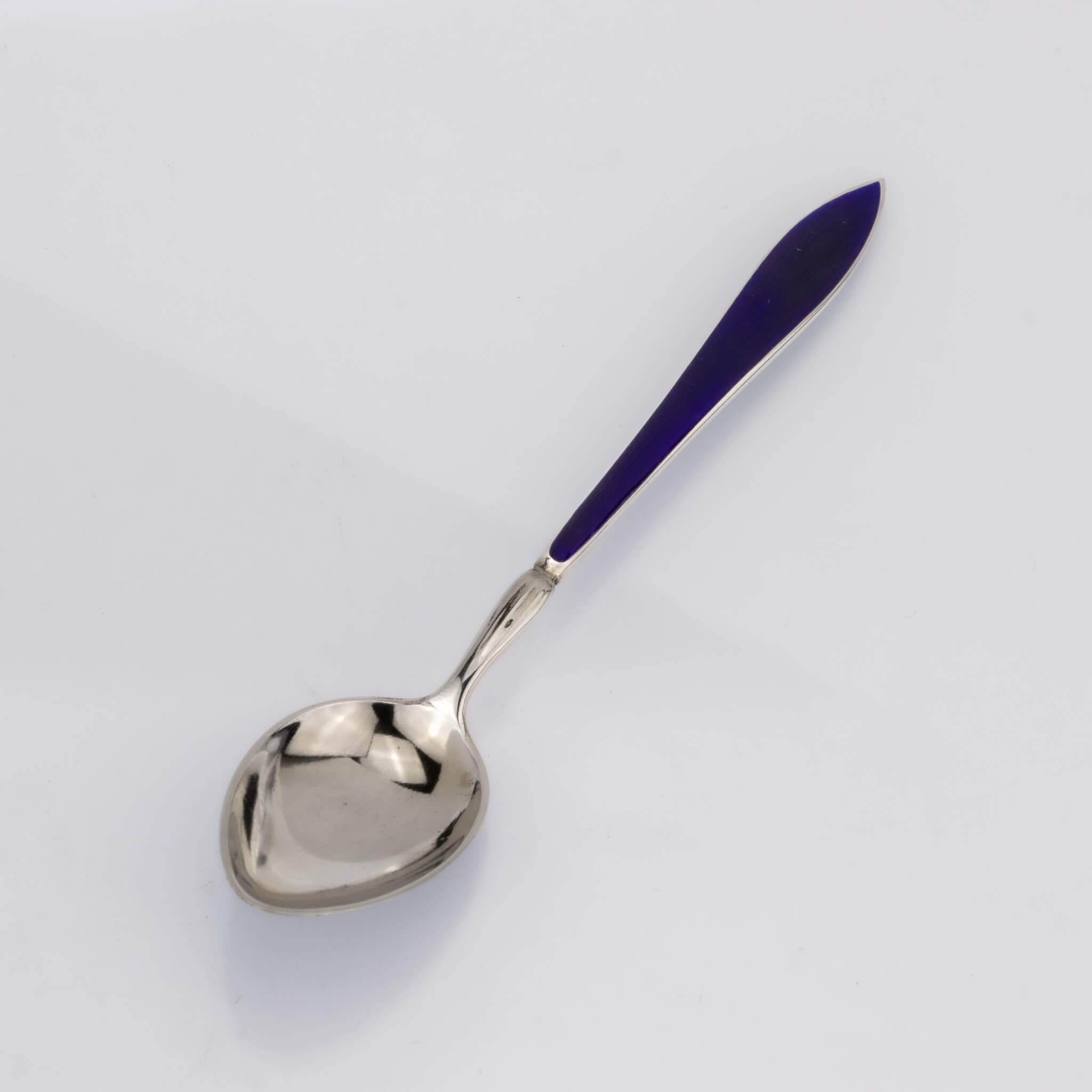 Emaljert foran og bak, inkludert ryggen på skjebladet, stemplet David Andersen, 925 s