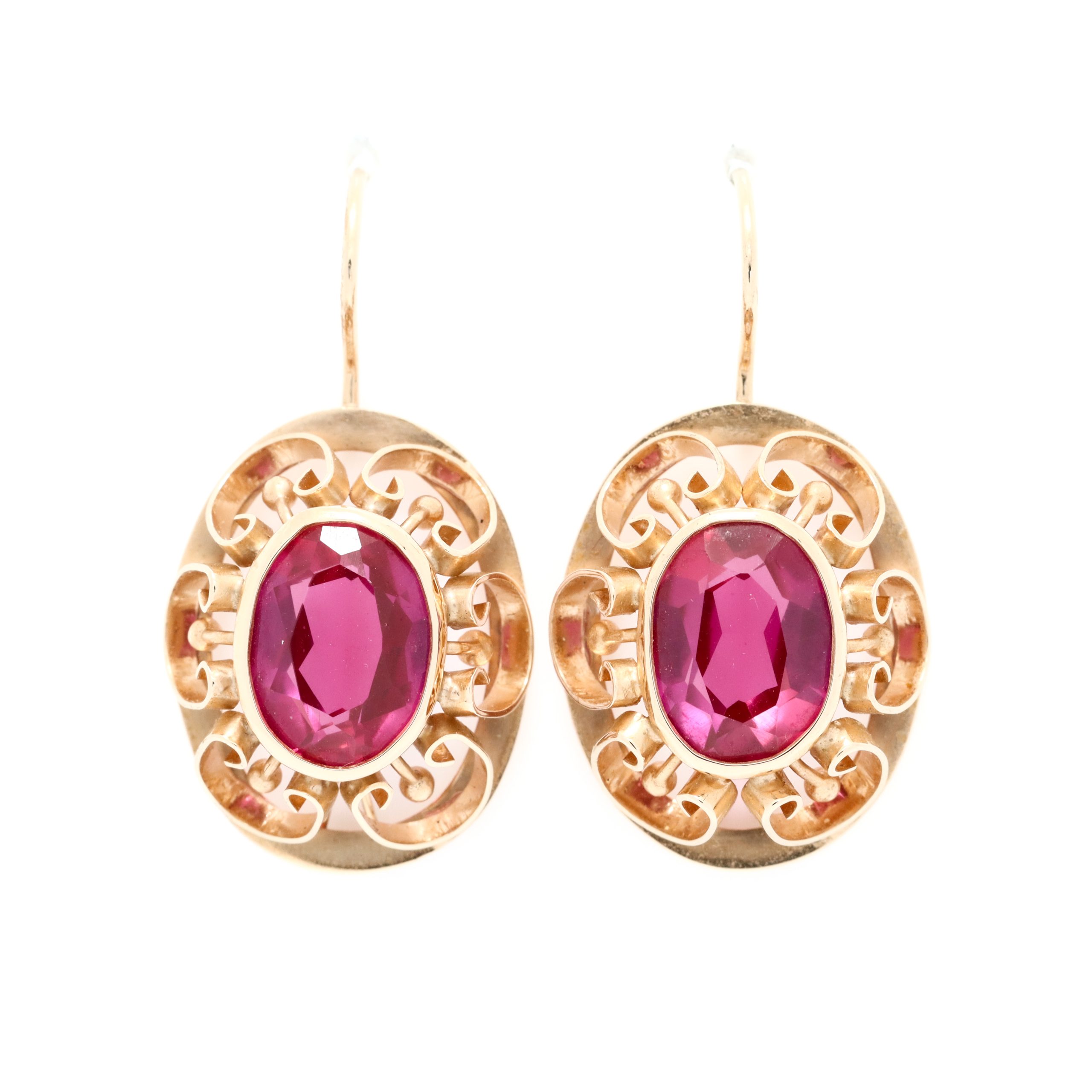 Fine dobber i gult gull 14 k med rød sten