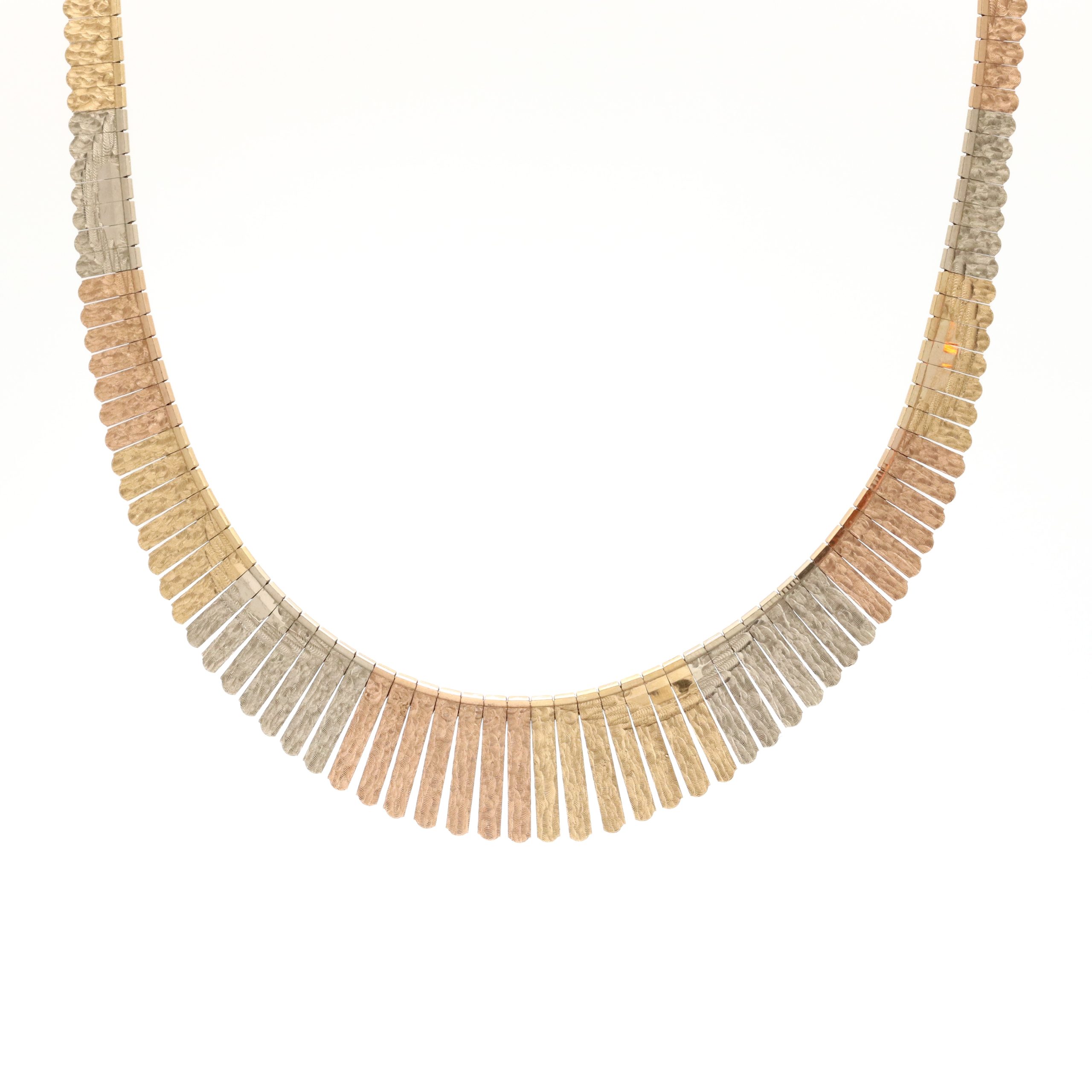 Flott halskjede i gult/hvitt og rødt gull 18 k