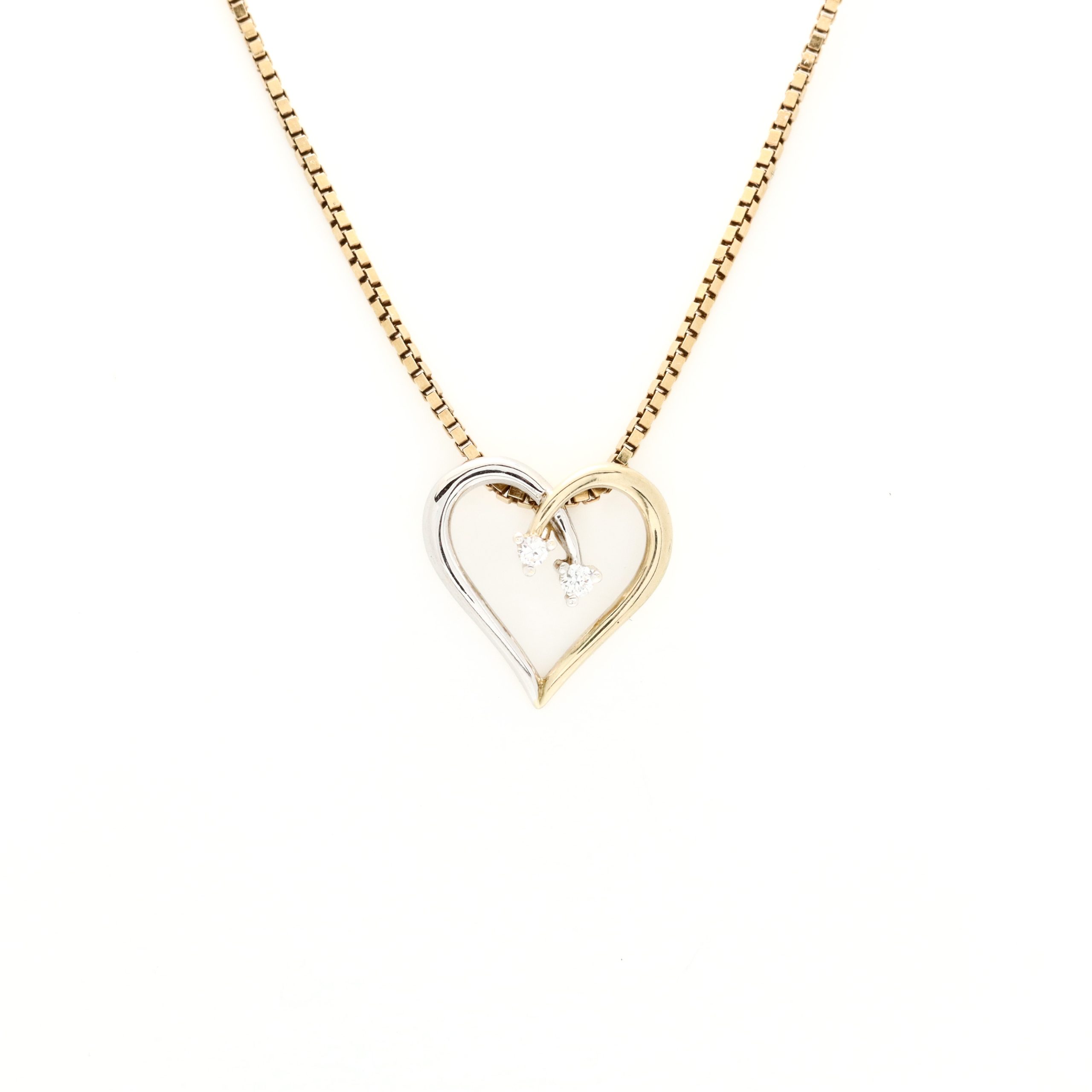 Hjerte anheng i gult/hvitt gull 14 k med stener