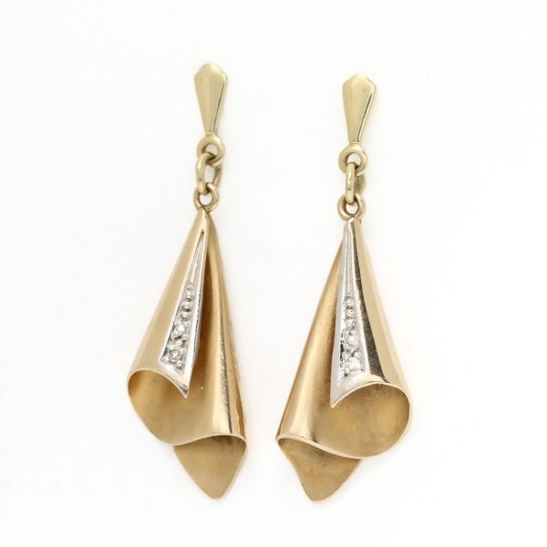 Lange øredobber i gult gull 14 k med zirconia