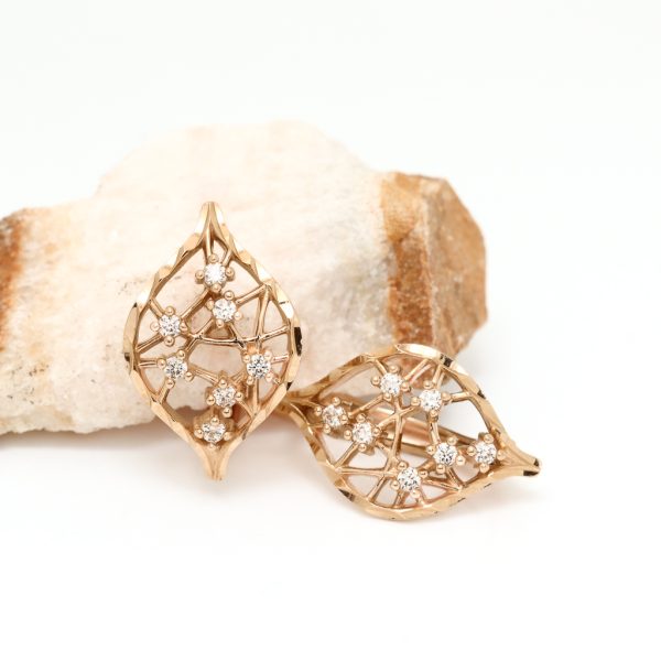 Fine mønstrede dobber i gult gull 14 k med stener