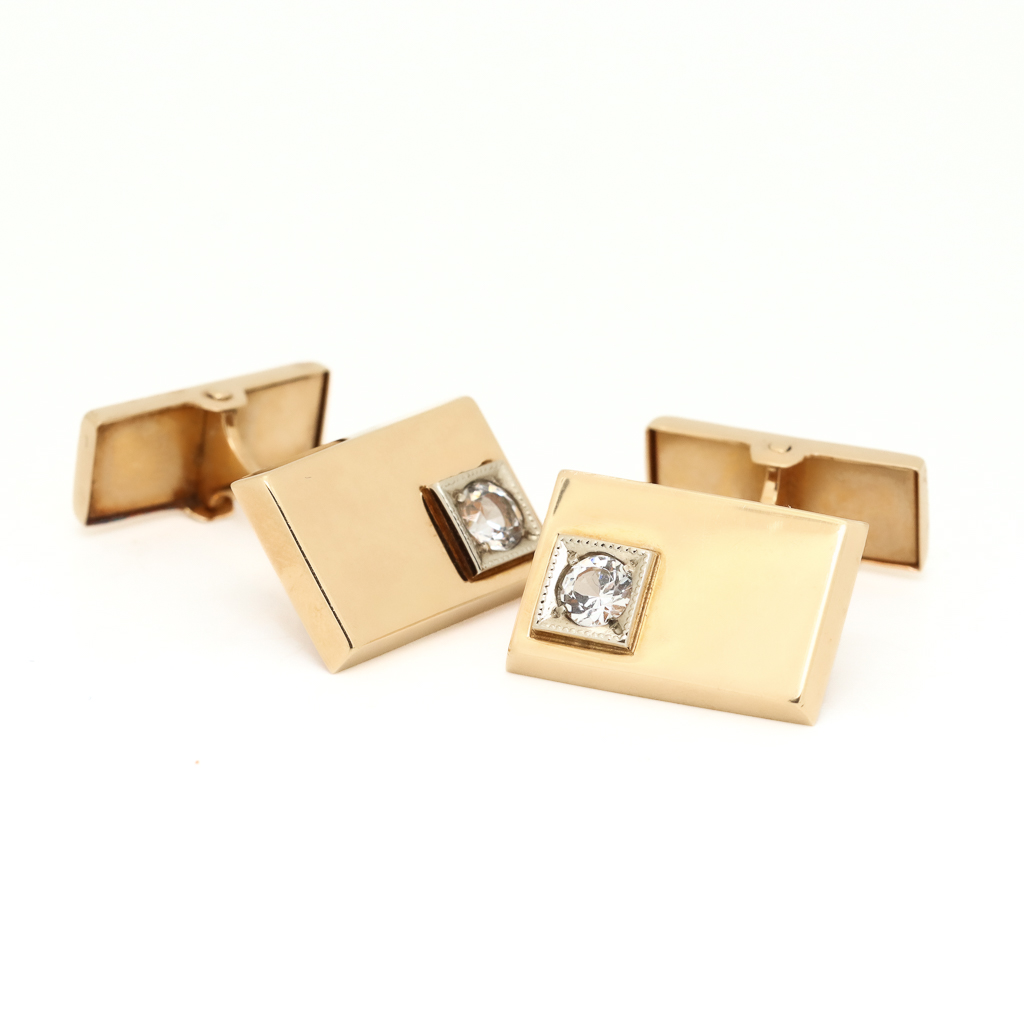 Mansjettknapper i gult gull18 k med sten - Bilde 1