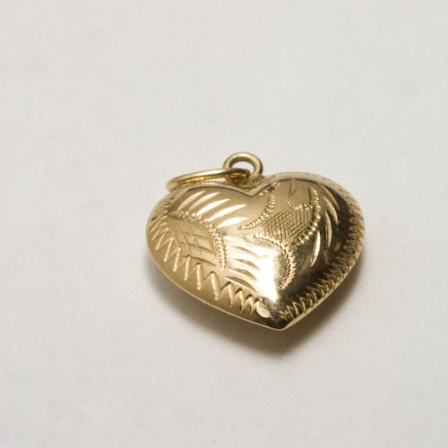 Mønstret anhengs hjerte i gult gull 14k