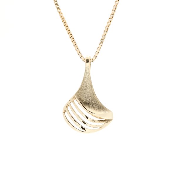 Pent mønstret anheng i gult gull14 k