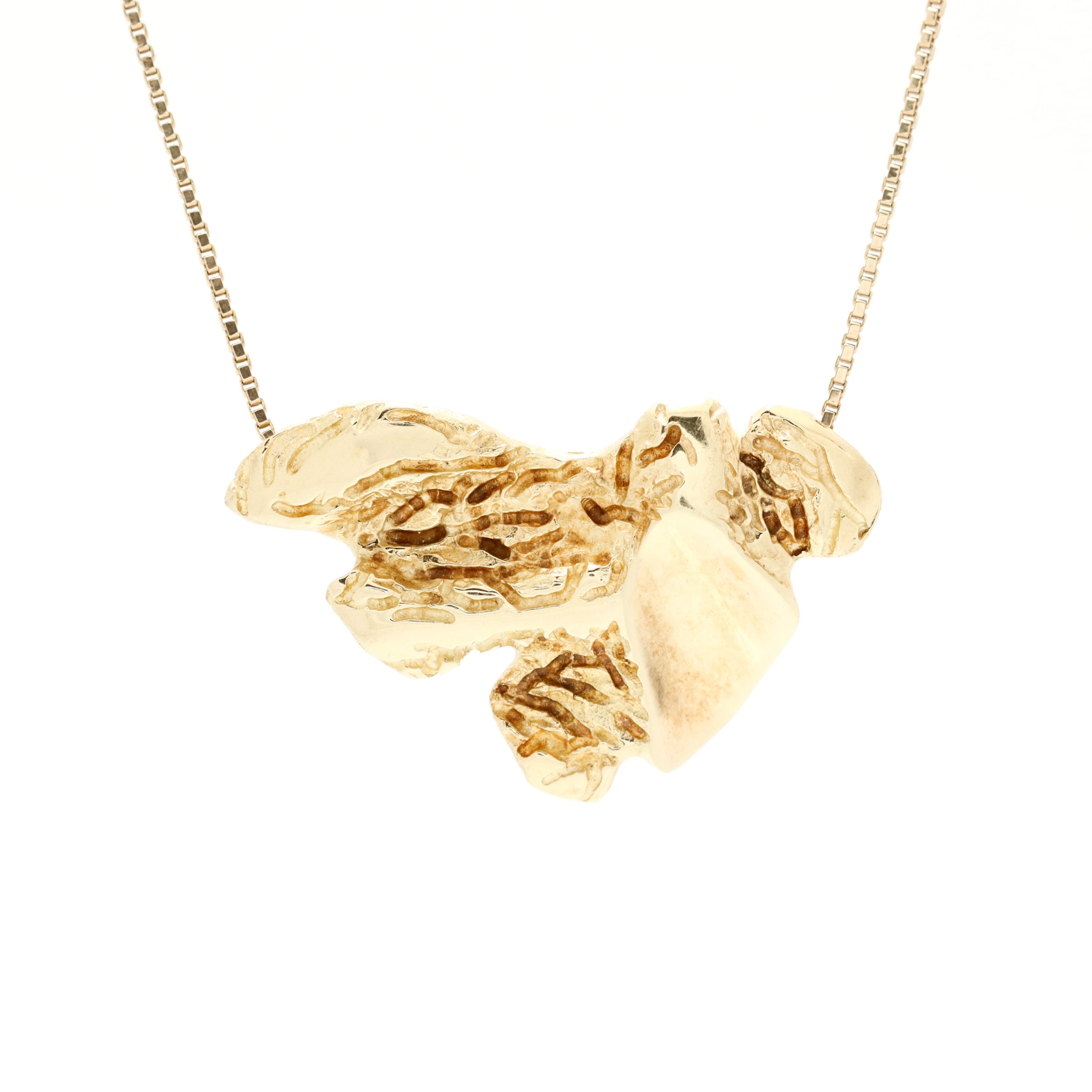 Mønstret anheng i gult gull 14 k