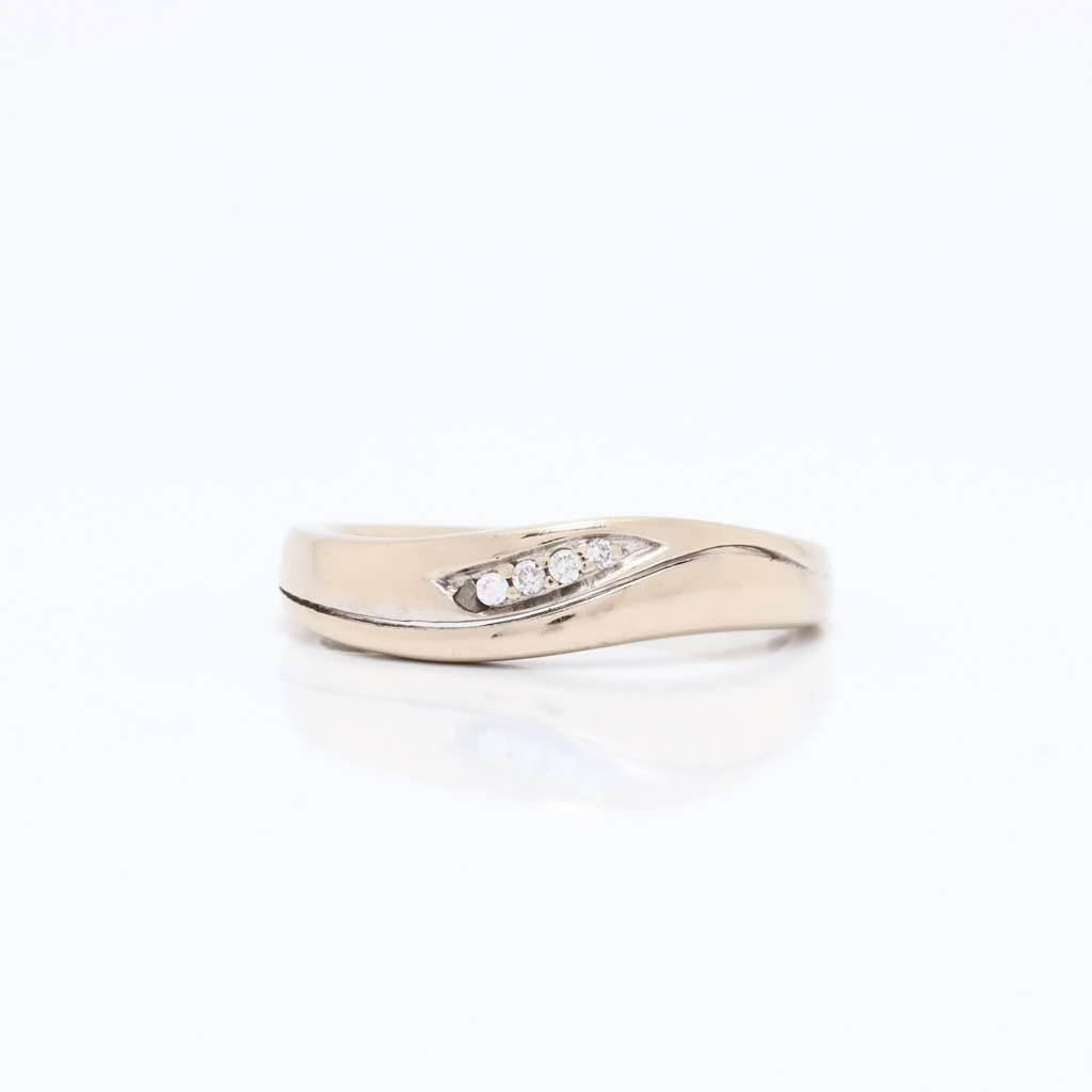 Den beskrives slik : Ring Gult/Hvitt gull Diamant 2 x 0,02 2 x 0,01