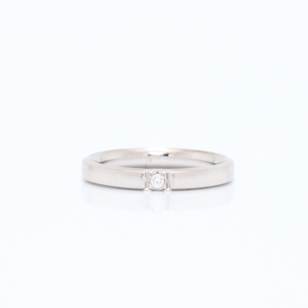 Den beskrives slik : Ring hvitt gull Diamant 0,03 Gsi