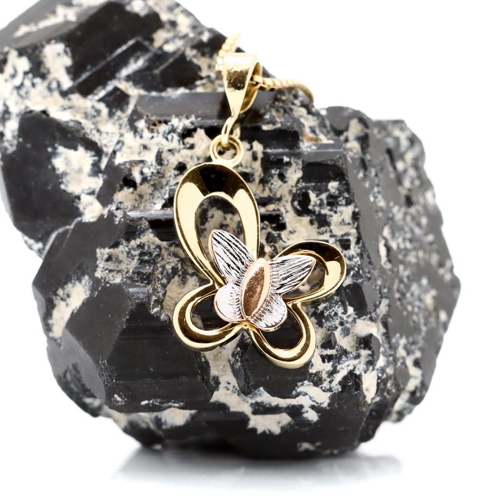 Sommerfugl anheng i gult gull 14 k